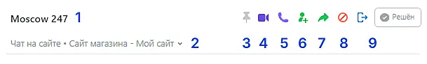 4 - Кнопка начала видеозвонка. Позволяет позвонить клиенту по видео. Подробнее об этой функции рассказали в инструкции "Настройка видеозвонков в Jivo".