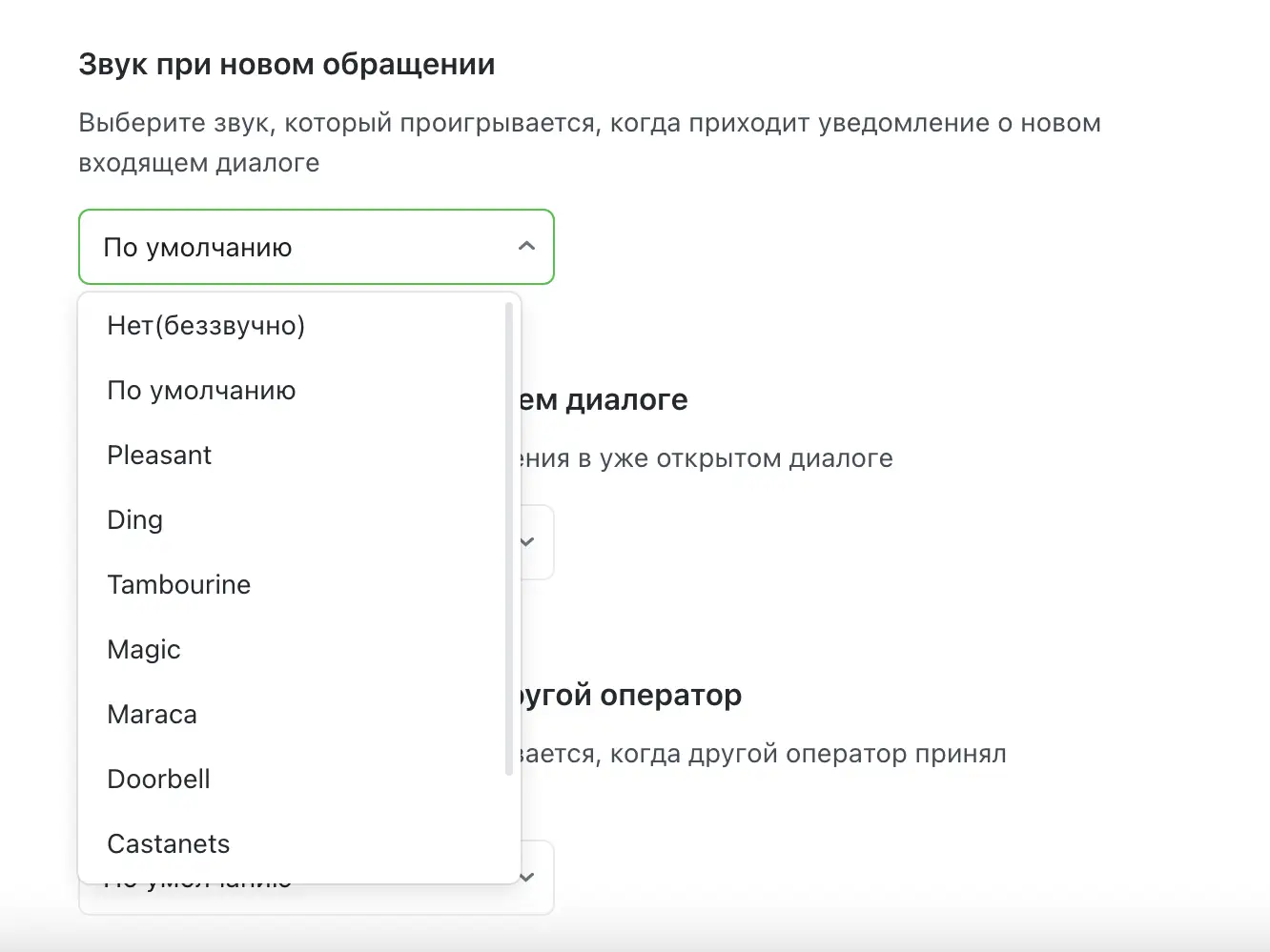 При активированной опции звук нового сообщения будет повторяться пока чат не будет принят оператором.