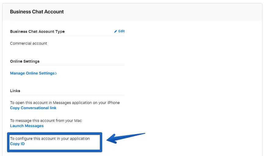 Должна получиться ссылка вида: href="bcrw.apple.com/urn:biz:здесь_ваш_ID".
