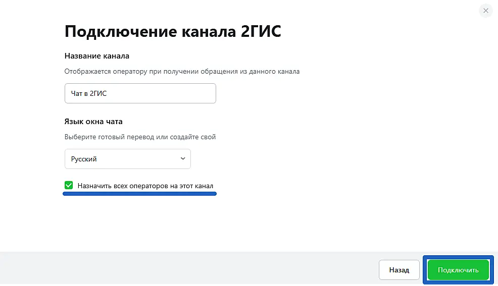 Здесь же вы можете сразу назначить всех операторов на канал связи. Позднее это можно будет изменить в настройках.