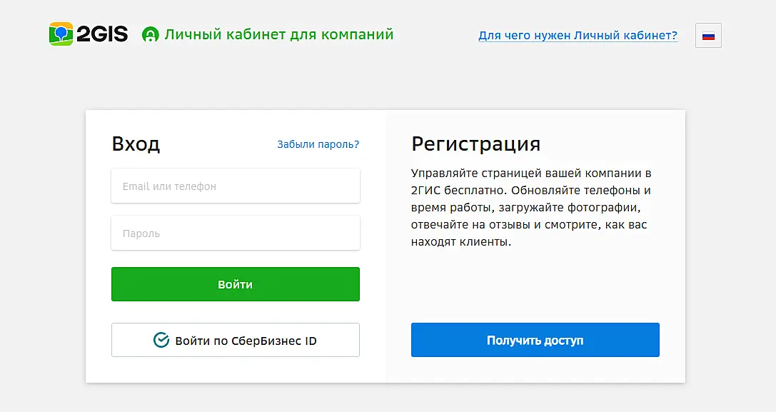 Если вы еще не зарегистрированы на платформе 2ГИС, пройдите регистрацию в личном кабинете и добавьте свою компанию на карту по инструкции.