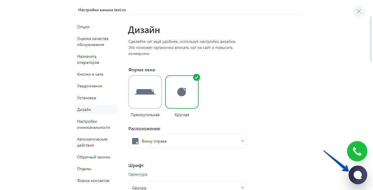 Появилась возможность настраивать форму окна чата. Иконка, которую вы выберете, будет отображаться на сайте в версии для ПК. Круглая иконка чата будет выглядеть следующим образом: