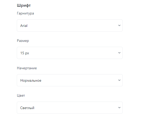Вы можете настроить вид шрифта, его тип, размер и цвет.