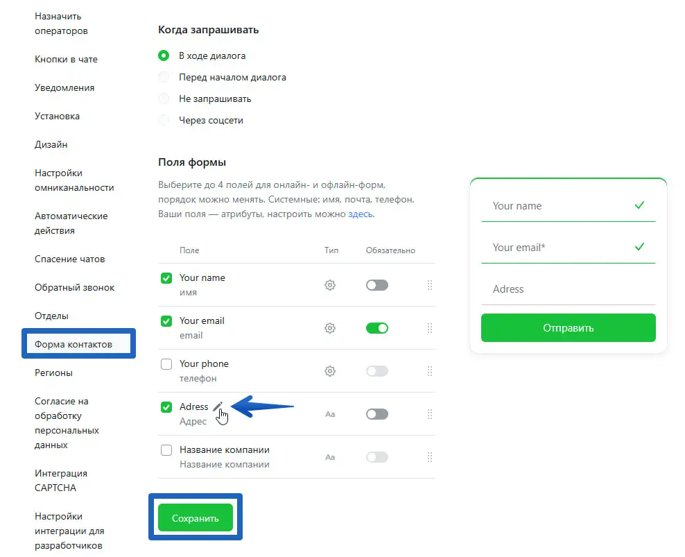 Перейдите в настройки канала связи, в раздел "Форма контактов".