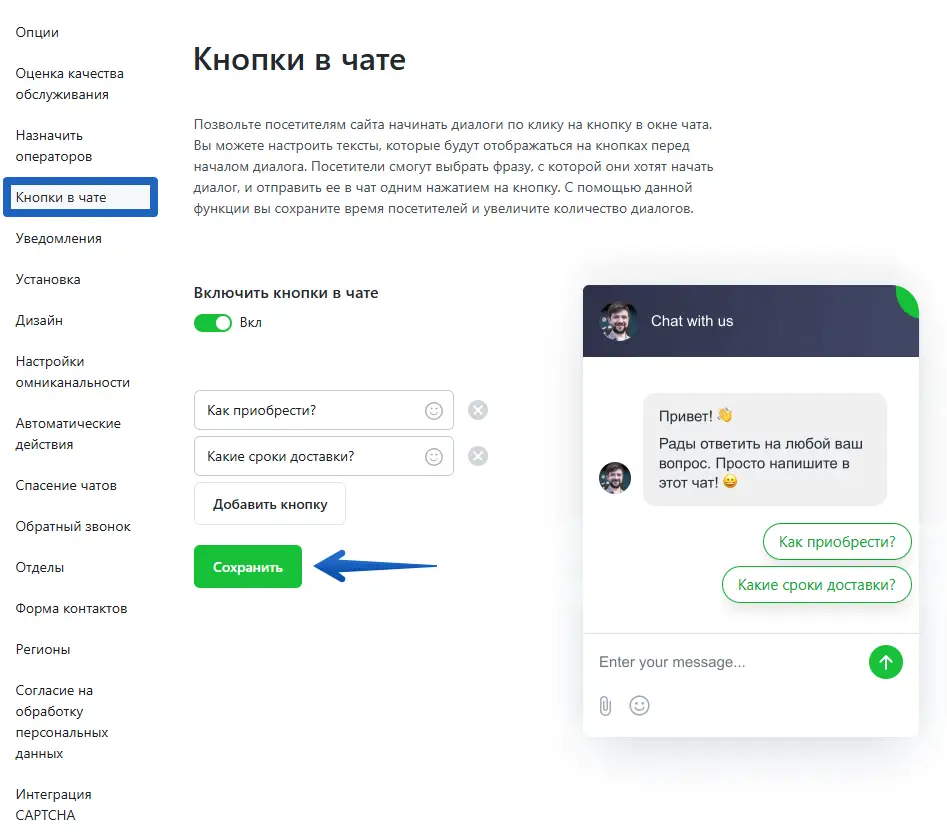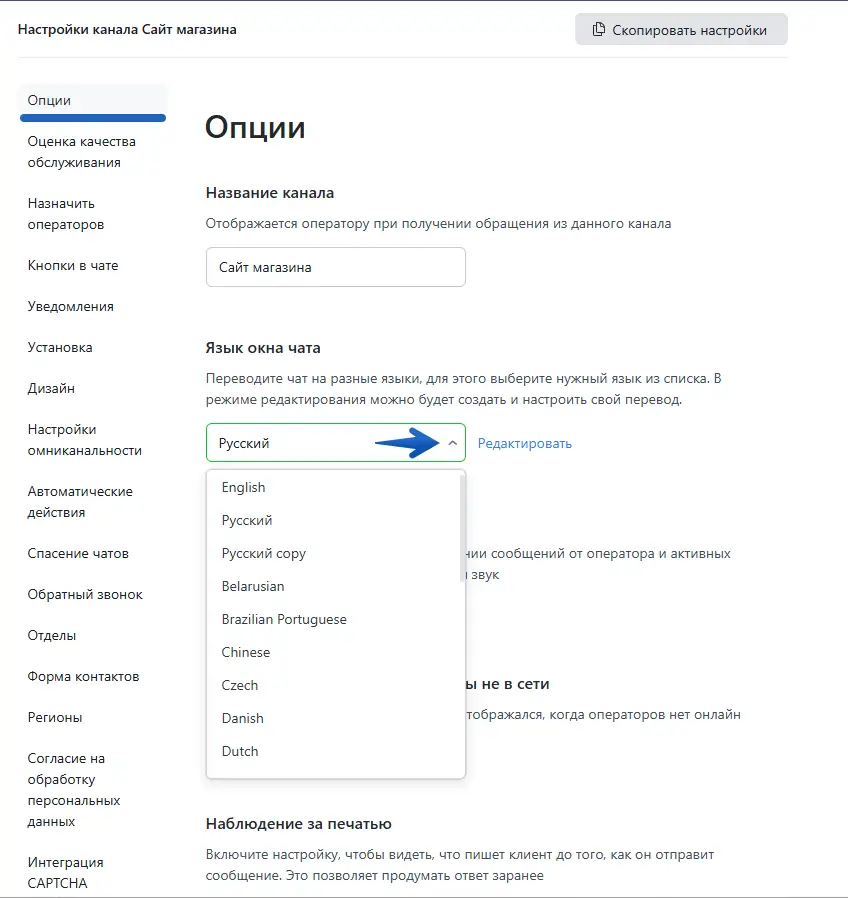 Также вы можете настроить автоматическую смену языка чата на сайте по нашей инструкции "Как настроить смену языка чата на мультиязычном сайте".