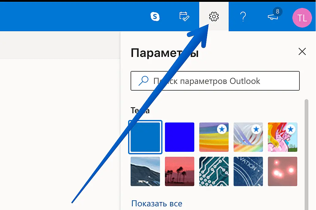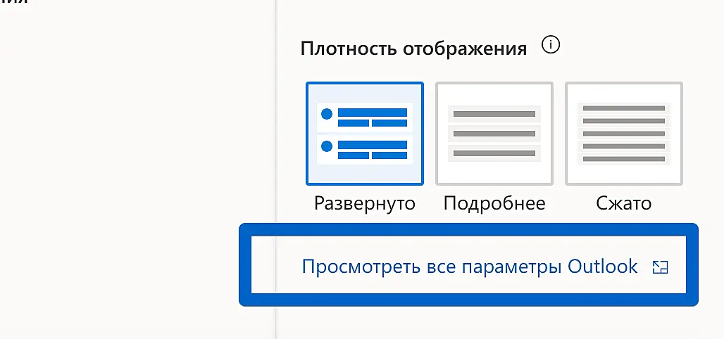 В вашей почте Outlook зайдите в "Настройки" > "Посмотреть все параметры Outlook".