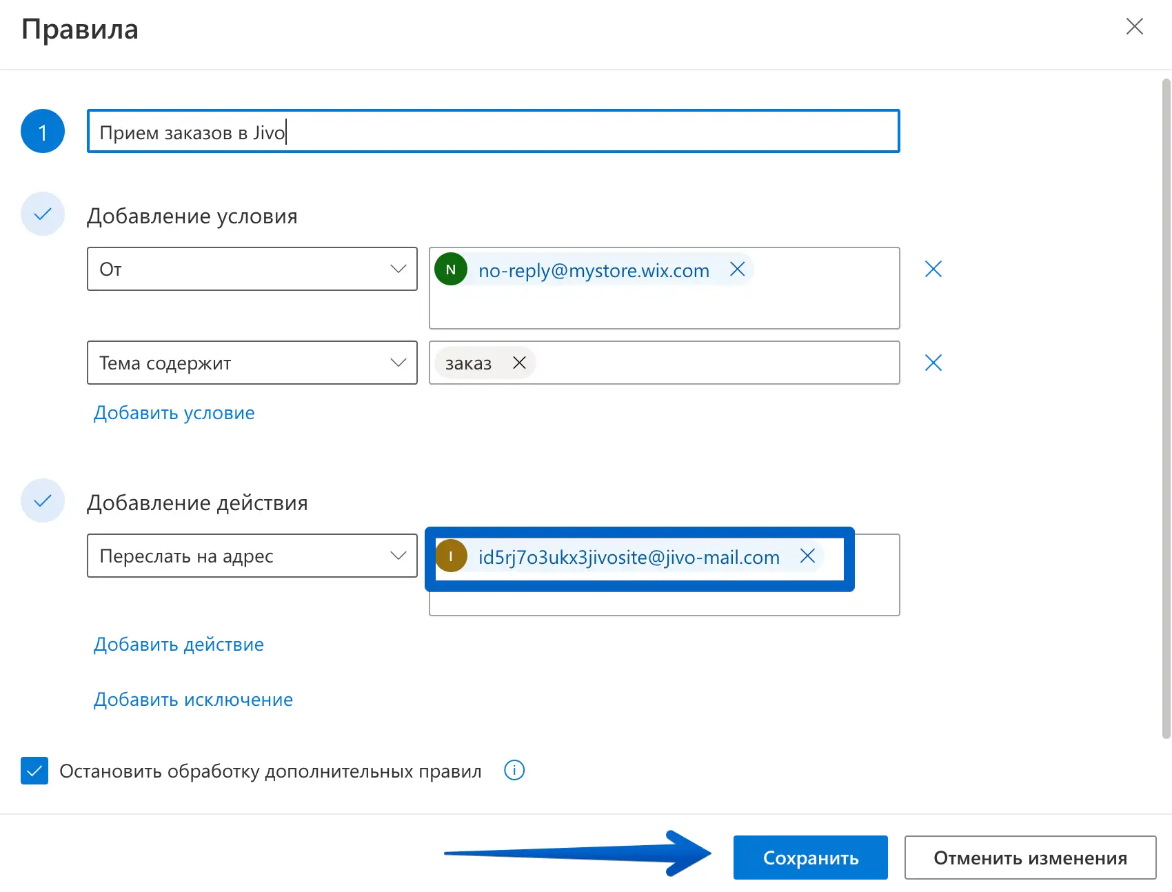 Теперь в Jivo будут перенаправляться только нужные письма.