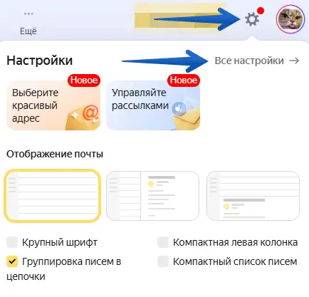 Для начала откройте вашу почту и перейдите в раздел "Настройки" > "Все настройки".