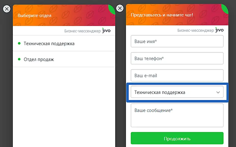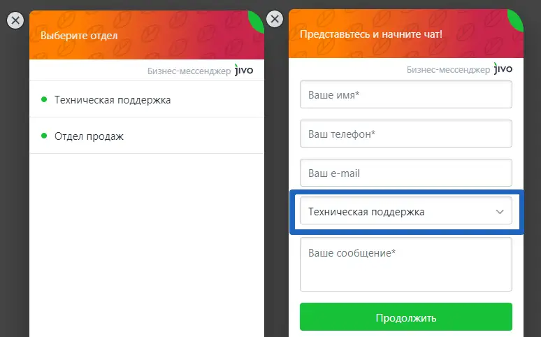 Готово! Теперь клиенты смогут выбрать один из добавленных отделов в чате:
