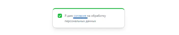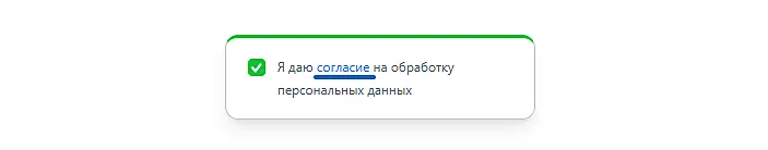 Обратите внимание: Согласие на рассылку не получится включить без согласия на обработку данных.