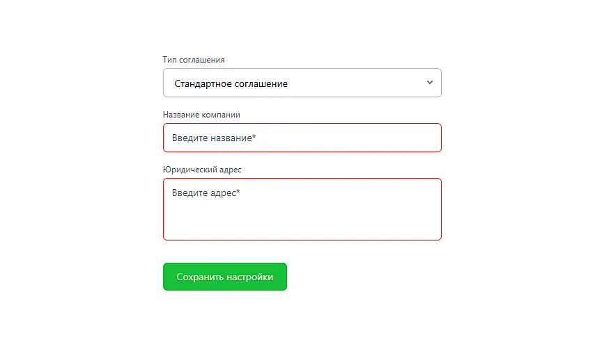Мы подготовили типовой документ, описывающий общие принципы обработки данных. При выборе стандартного соглашения, укажите название и юридический адрес компании в соответствующих полях.