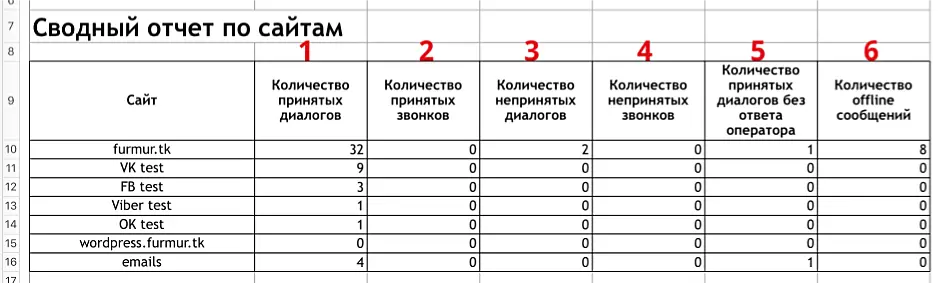 В нашем сервисе доступна выгрузка статистики по работе чата и операторов. Вы можете получить отчет по всем каналам аккаунта в виде сводных таблиц.