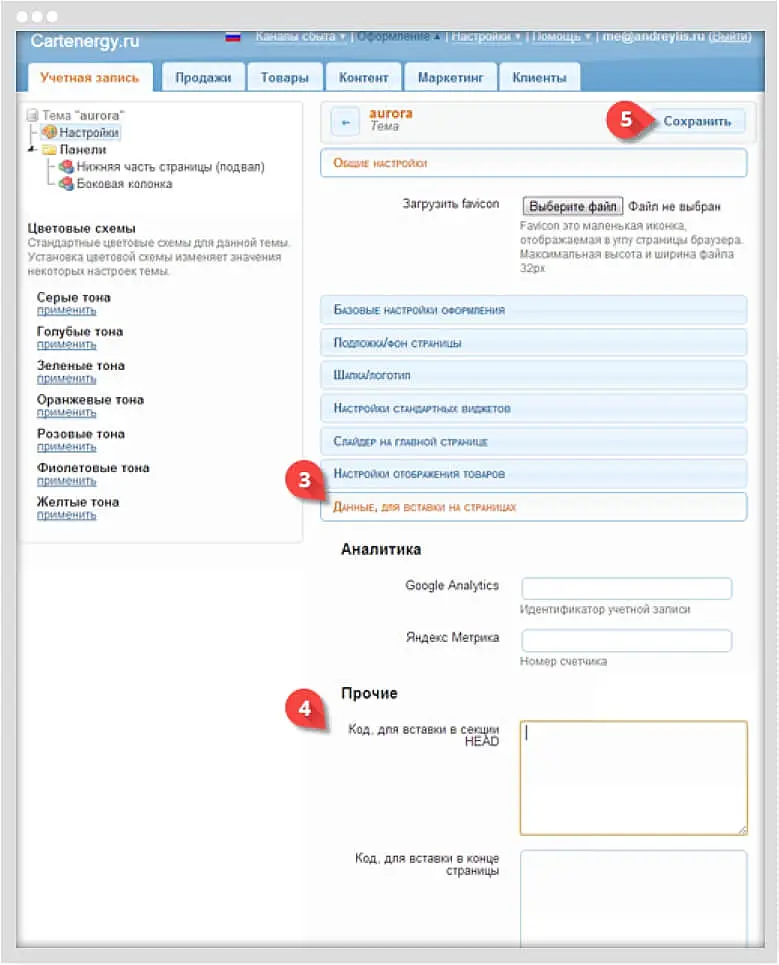 1) Перейдите в меню на вкладку "Оформление".