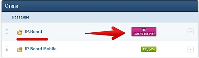 В разделе «Стили» выбираем стиль IP.Board, который установлен по умолчанию. Если вы используете другие стили, то выбирать нужно именно их.