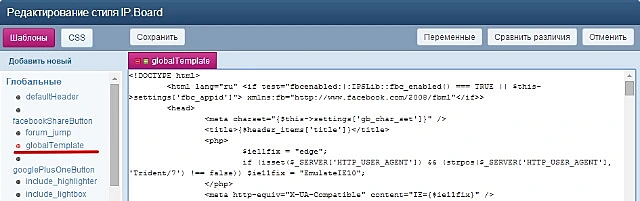 В редакторе стиля IP.Board найдите шаблон GlobalTemplate и выбирите его.