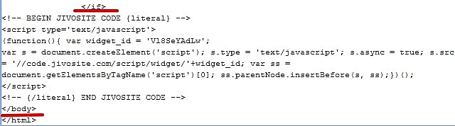 Код онлайн-консультанта Jivo необходимо установить перед закрывающим тегом </head>. Сохраните изменения. Готово!