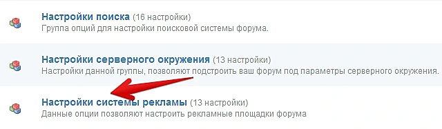 Во вкладке «Система» перейдите в «Настройки системы рекламы».