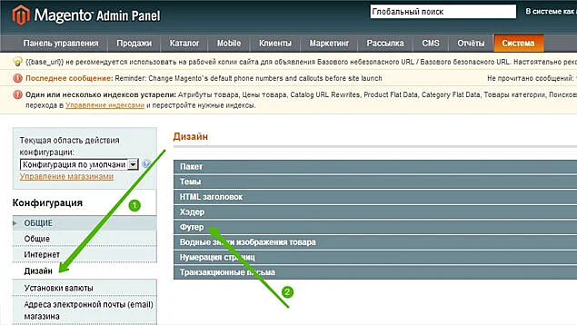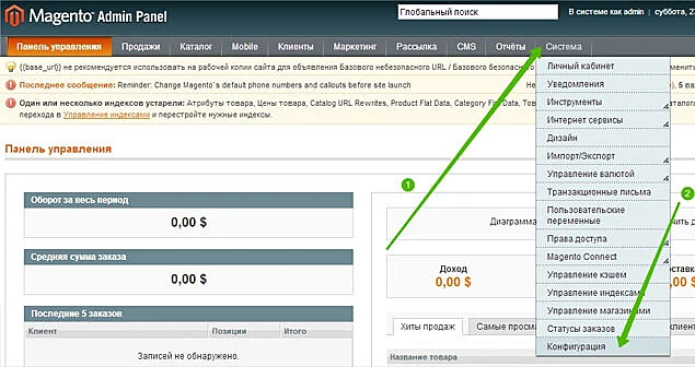В панели управления Magento откройте раздел «Система» и выберите раздел «Конфигурация»: