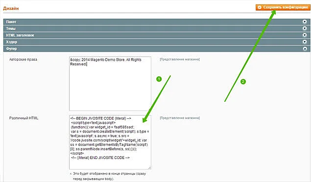 Magento - установка кода чата