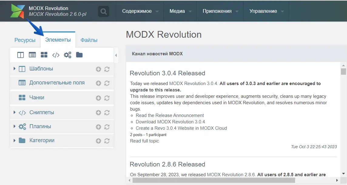 Для установки кода виджета на сайт откройте панель управления вашего сайта и перейдите на вкладку "Элементы", которая расположена слева от основного меню.