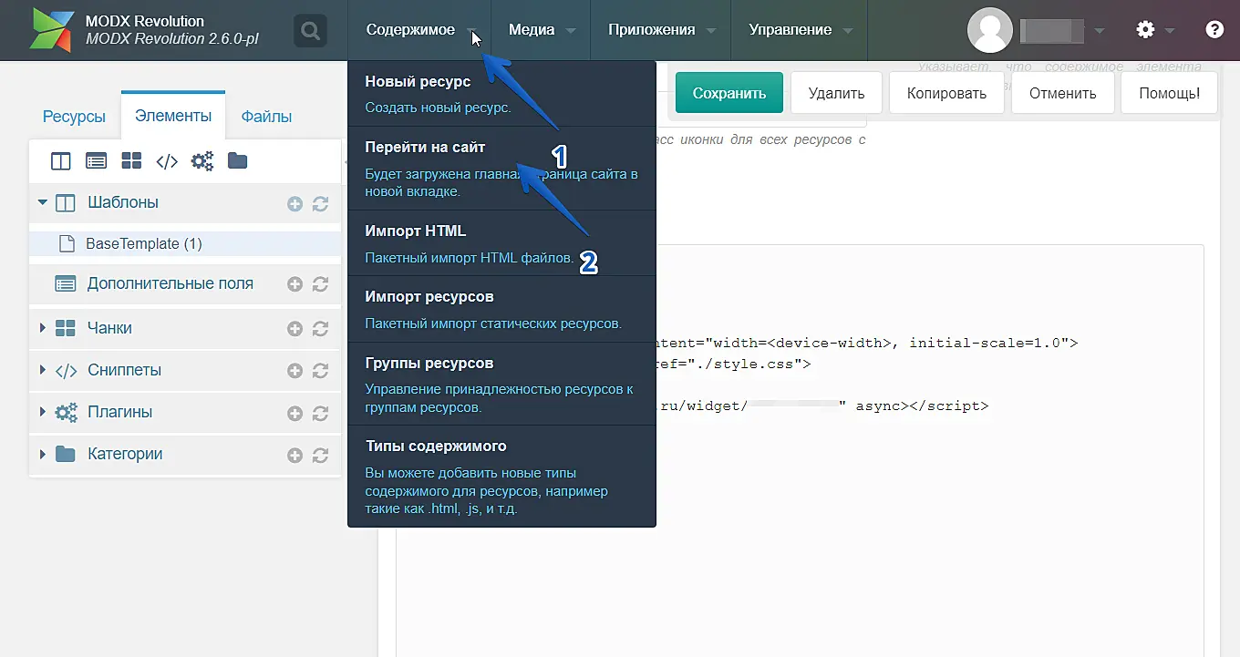 MODx — установка кода чата