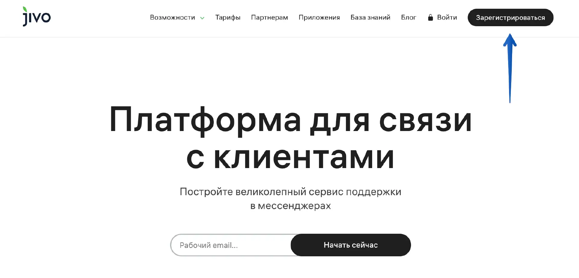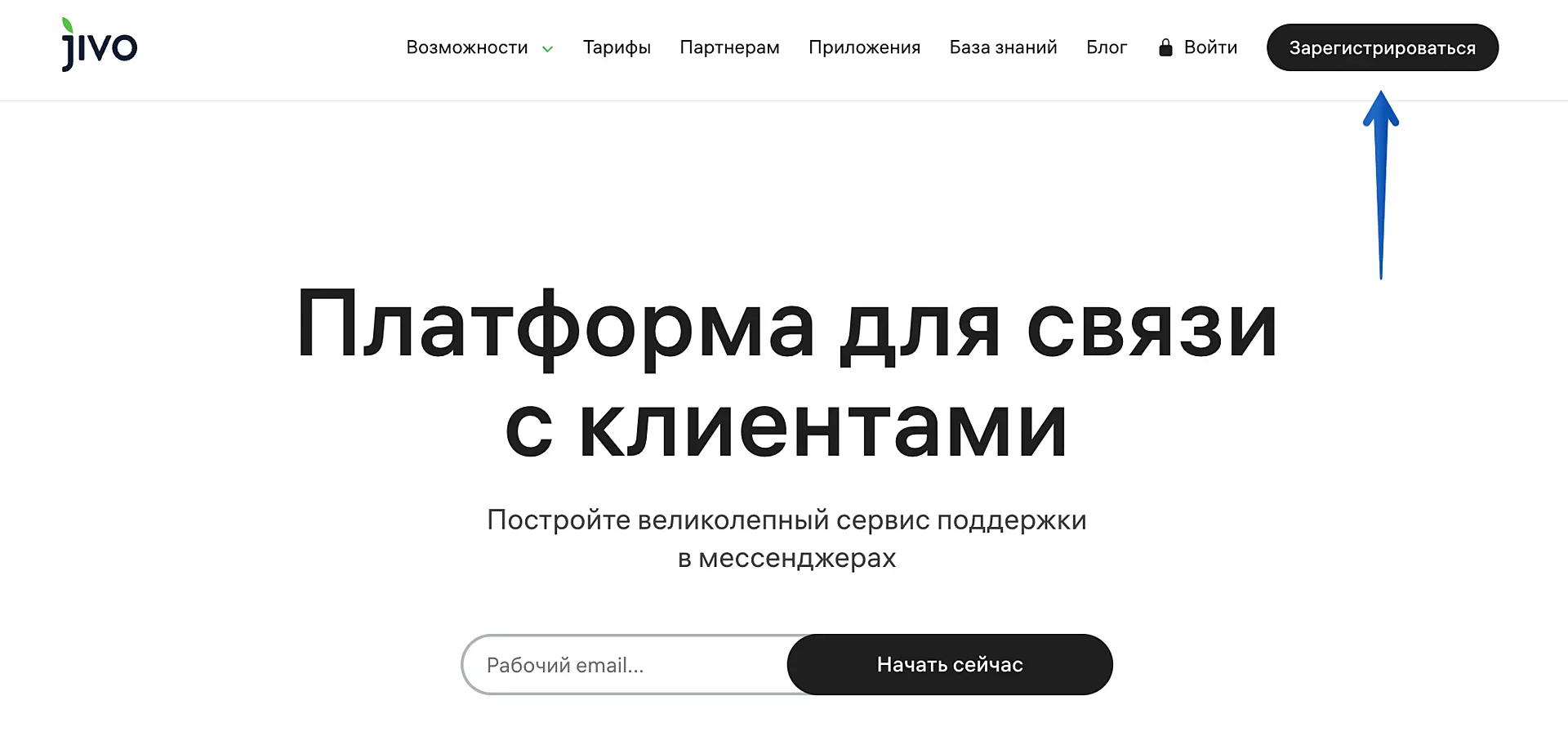 Чтобы зарегистрировать новый аккаунт, перейдите на сайт jivo.ru и нажмите кнопку "Зарегистрироваться" в правом верхнем углу.
