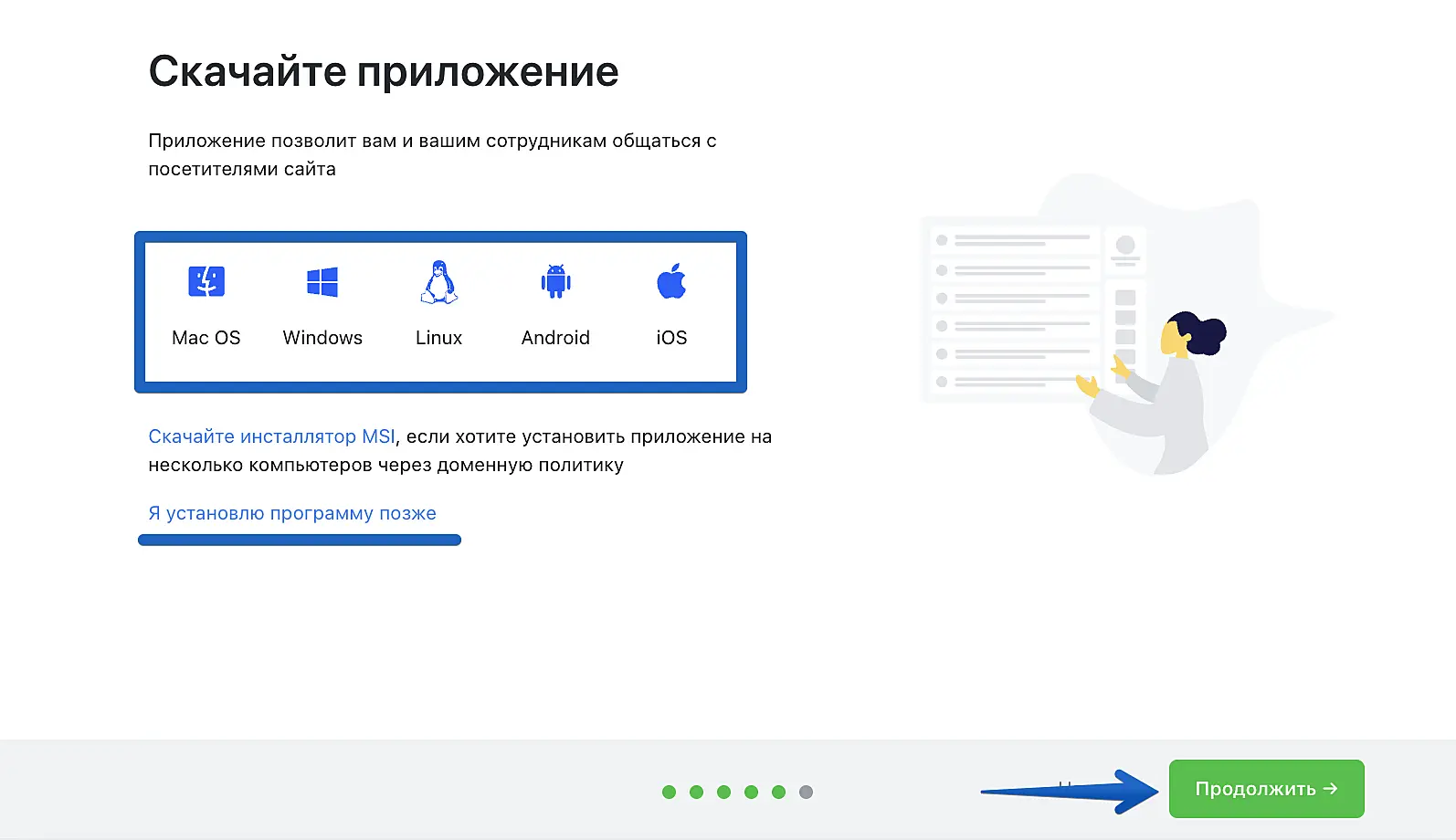 Если сейчас нет времени или возможности установить приложение, нажмите "Я установлю программу позже".