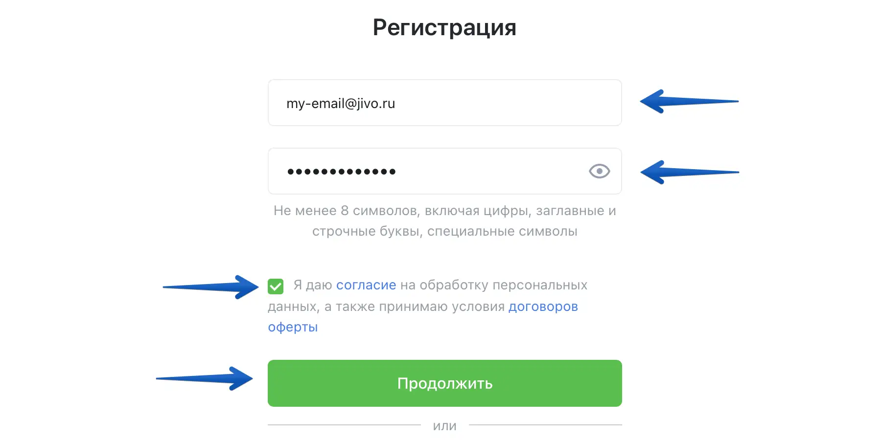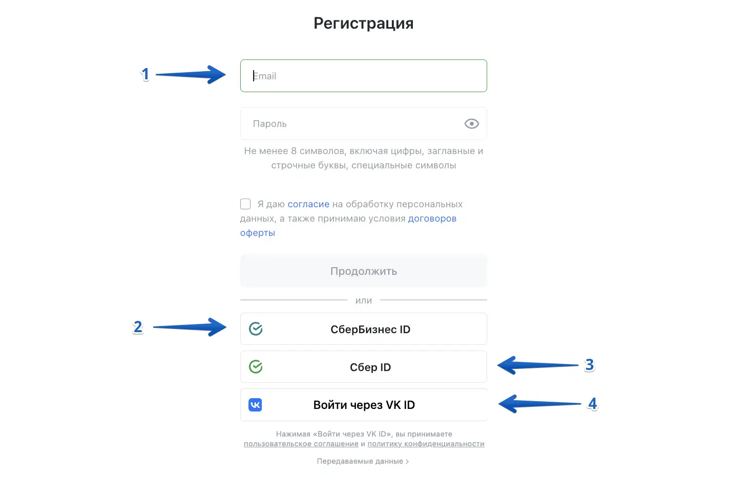 Поставьте галочку для предоставления согласия на обработку ваших данных и нажмите "Продолжить".
