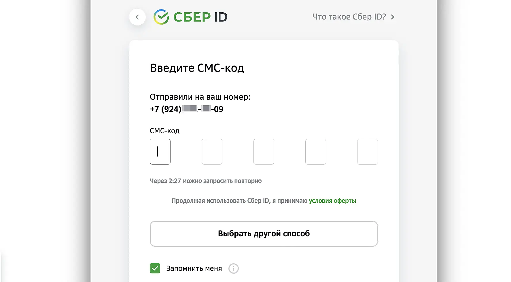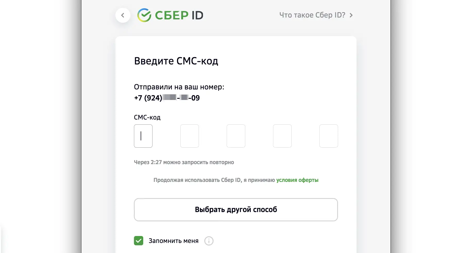 Если номер не привязан к Сбер ID, будет создан новый ID.