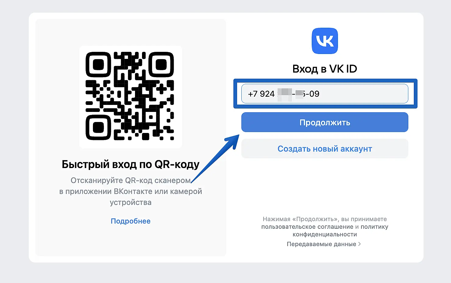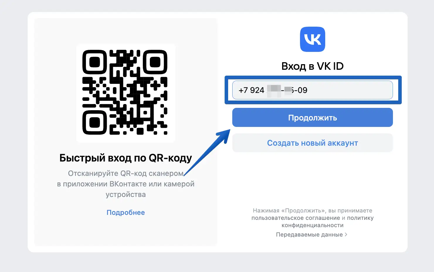 В появившейся форме id.vk.com введите ваш номер телефона и авторизуйтесь.