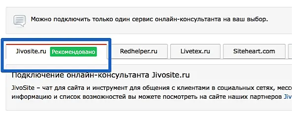 Выберите в списке онайн-консультант Jivo:
