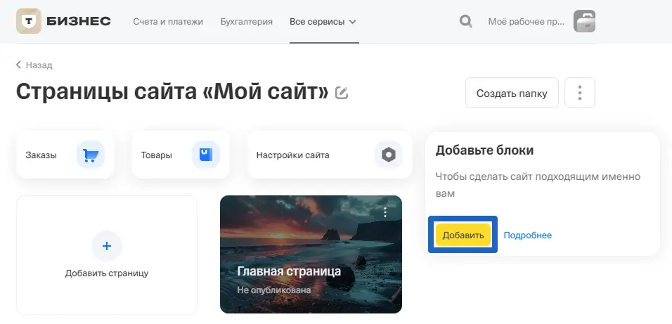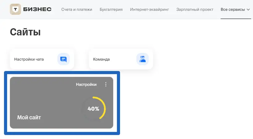 Далее перейдите в личный кабинет Т-Бизнес и нажмите на блок с названием вашего сайта, чтобы открыть список его страниц.