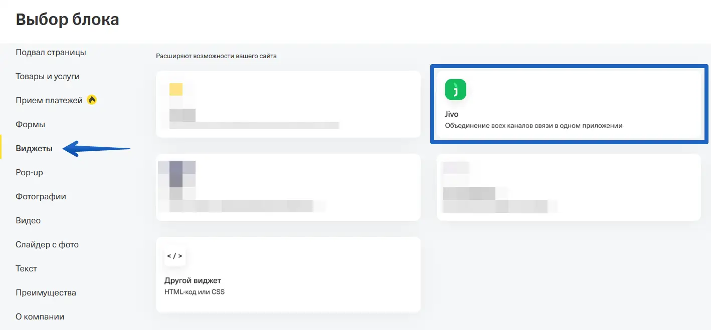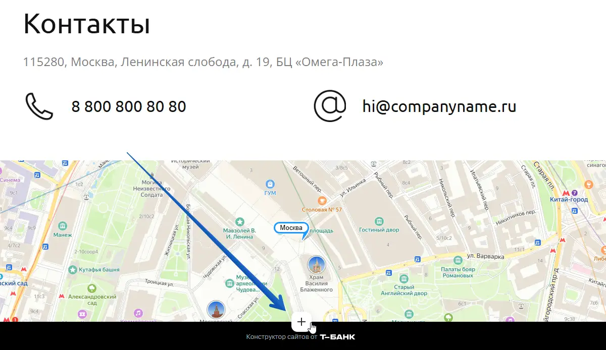 В конструкторе сайтов Т-Банк установить код нашего виджета можно с помощью добавления блоков. В инструкции ниже расскажем, как это сделать.