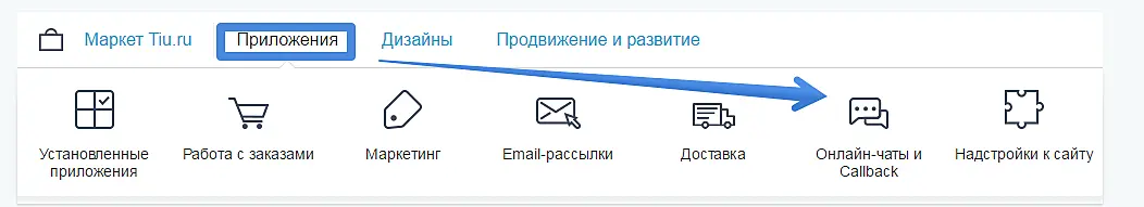Для начала вам нужно открыть «Мой Кабинет» в портале Tiu, затем переходите ко вкладке «Приложения» и выбираете приложение Jivo.