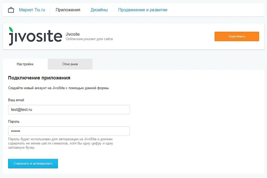 После этого, если у вас уже есть аккаунт Jivo, то необходимо будет ввести учетные данные администратора (email и пароль), если же аккаунта еще нет, то просто введите ваш email и пароль для Jivo и он будет создан автоматически.