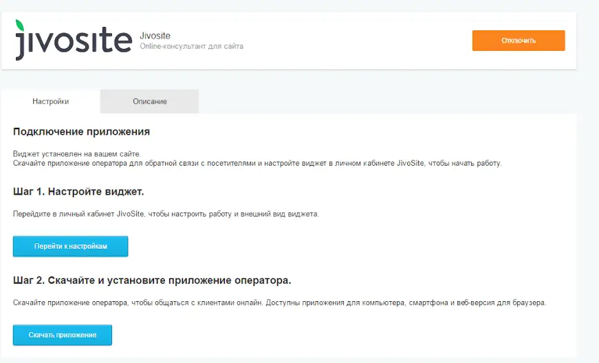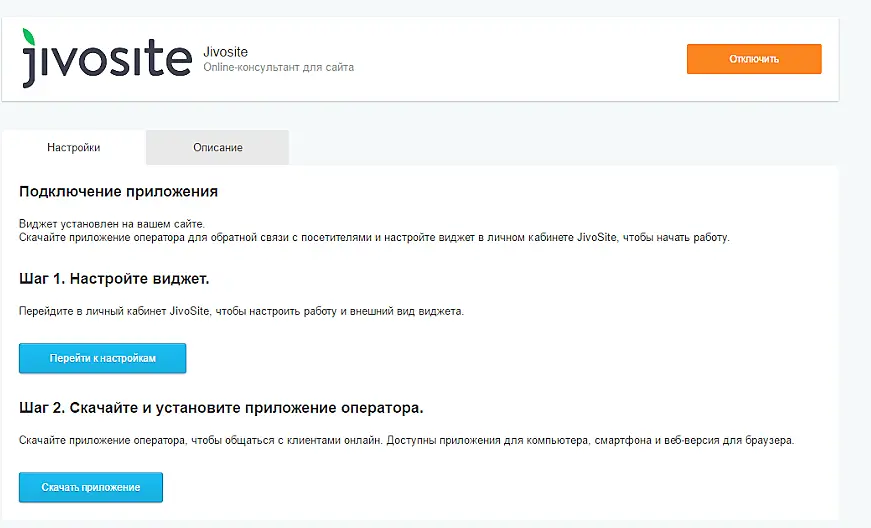 Готово, приложение Jivo подключено, для настроек чата вы можете перейти в личный кабинет или же установить приложение Jivo для общения с посетителями сайта.