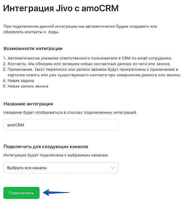 Подробнее о возможных настройках интеграции рассказали в статье "Интеграции с CRM — вопросы и ответы".
