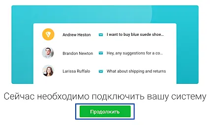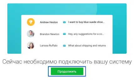 Вам откроется новая страница с подключением к системе amoCRM. Нажмите "Продолжить":