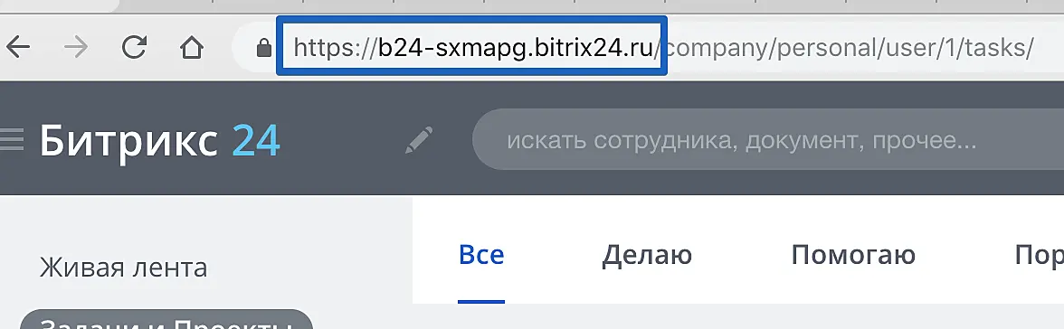 - Домен Битрикс24. Им является адрес вашей системы в Битрикс24, который можно скопировать из адресной строки: