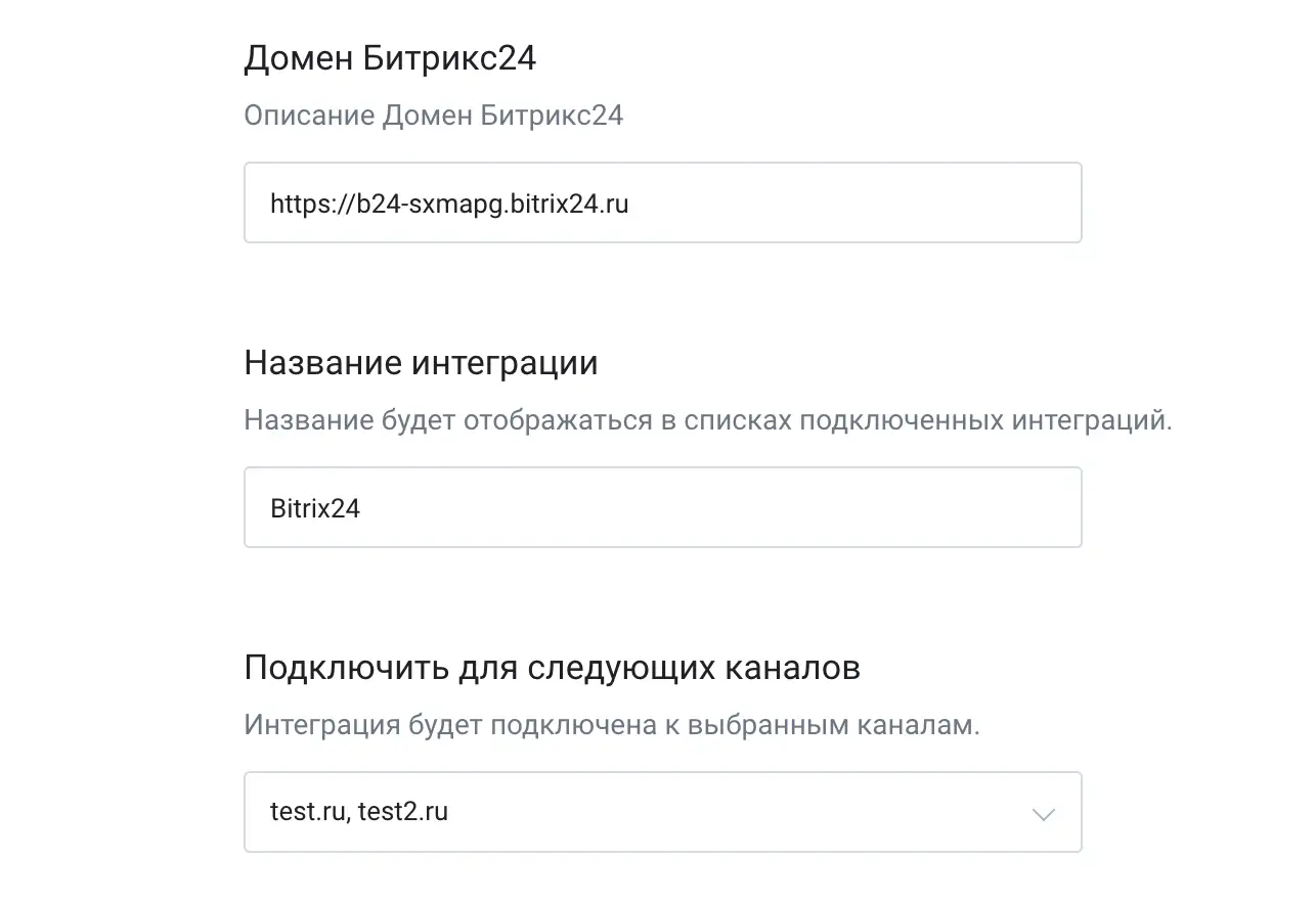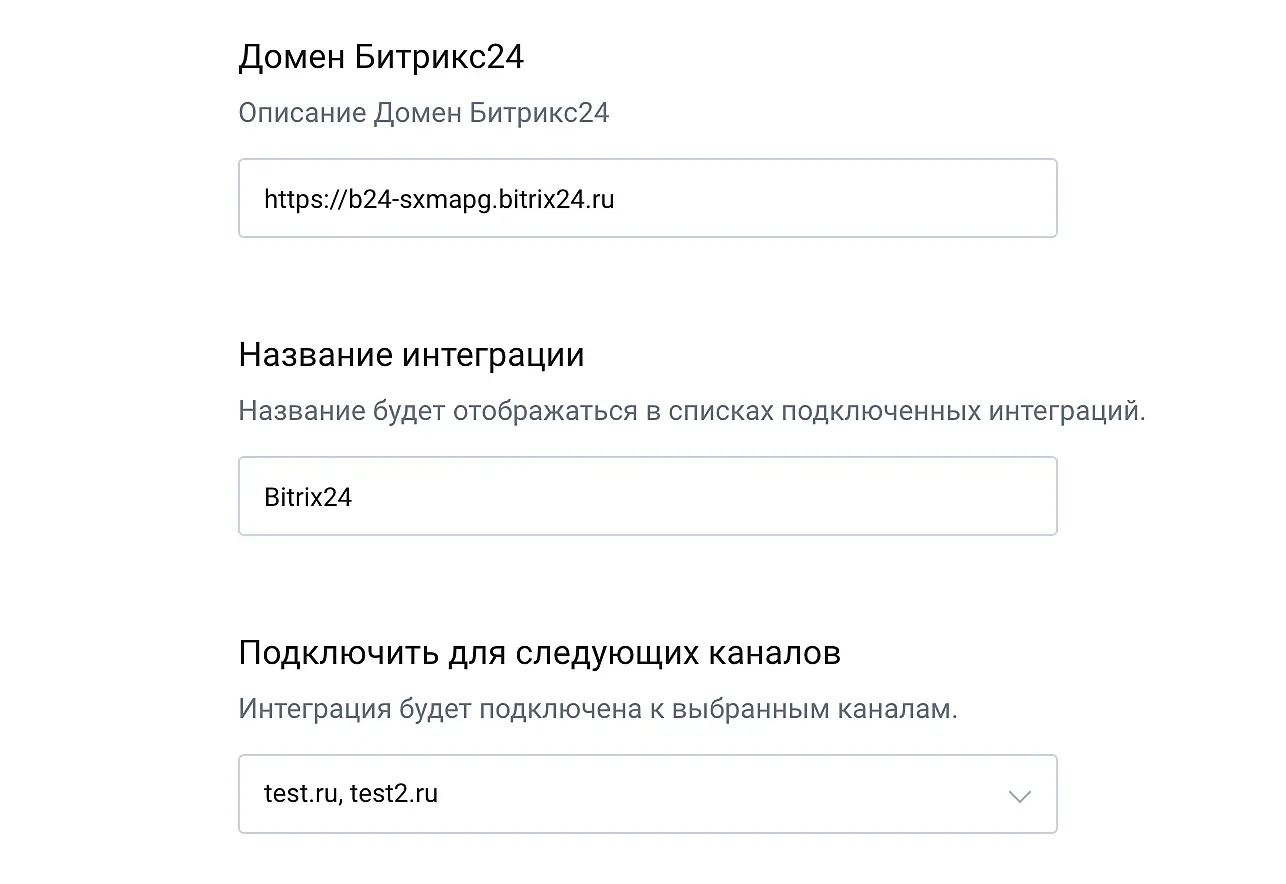 - Название интеграции. Название, которое будет отображаться в списке подключенных интеграций. Можно указать любое, его не увидят ваши клиенты.