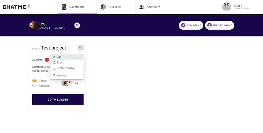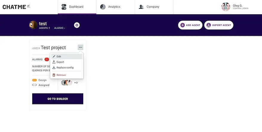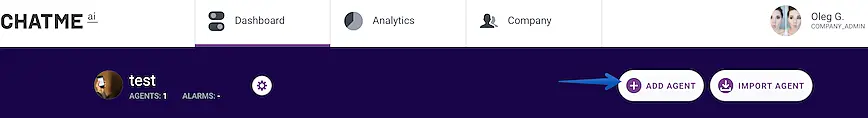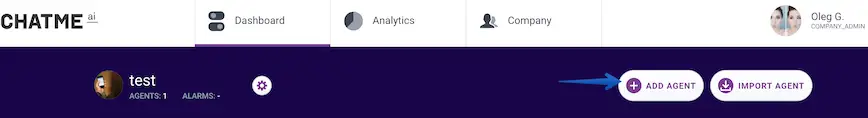 После регистрации, необходимо будет создать нового агента в ЛК Chatme.ai: