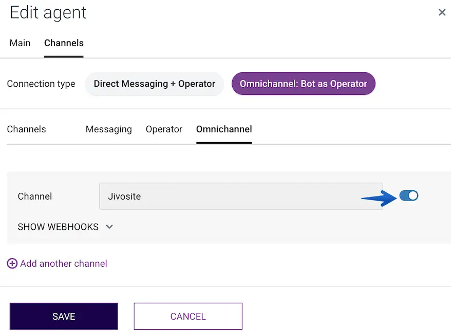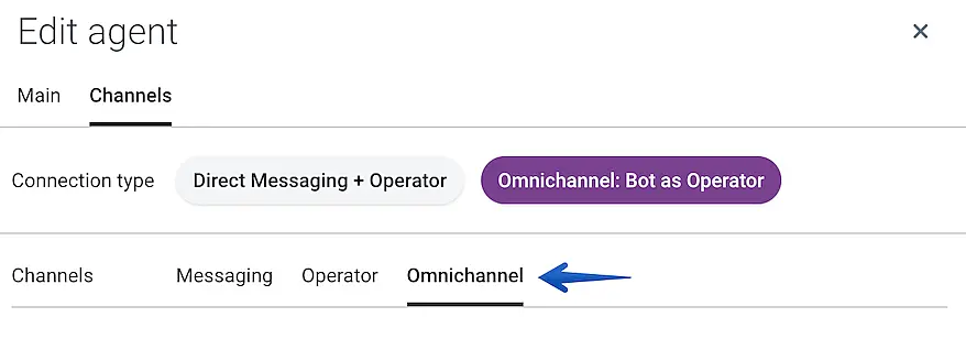 Затем, перейдите в настройки агента, откройте раздел Каналы и выберите Omnichannel: