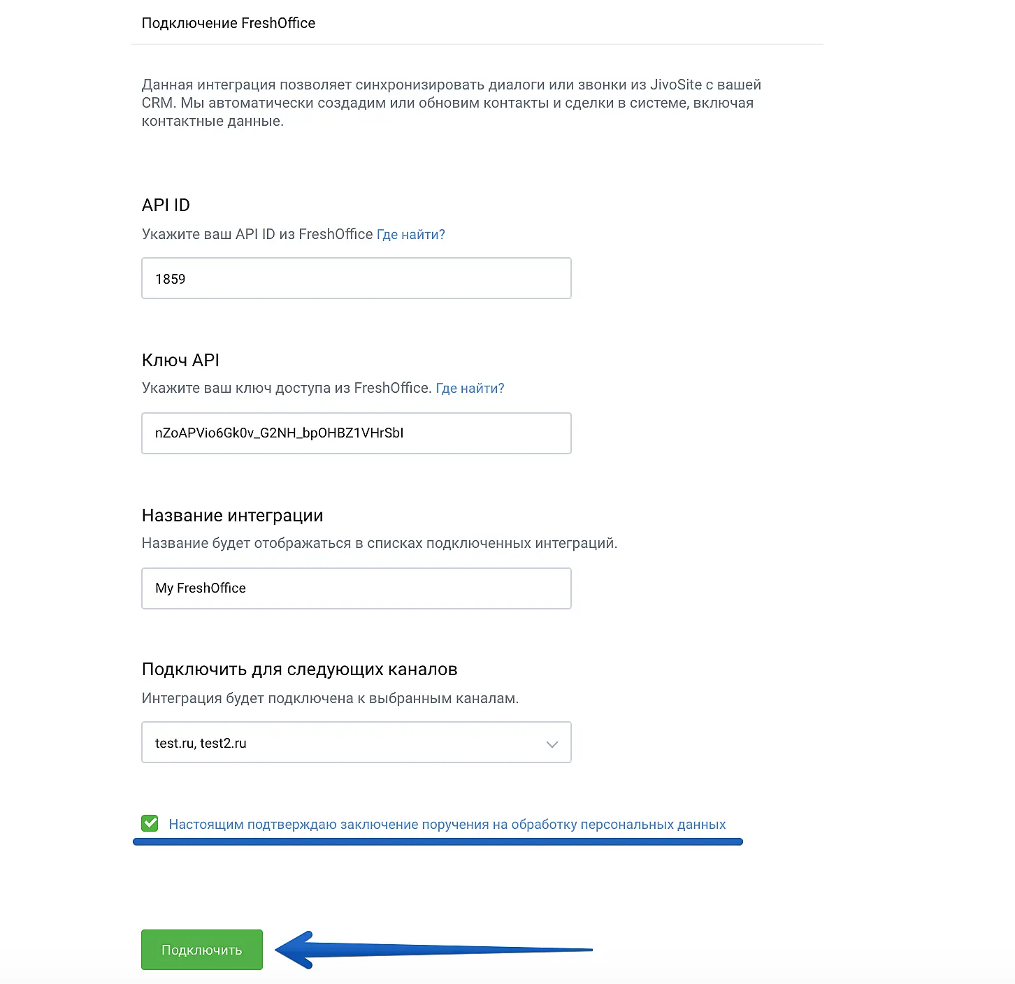 Данная интеграция позволяет синхронизировать диалоги и звонки из Jivo с вашей системой FreshOffice. Мы будем автоматически создавать и обновлять контакты и сделки в системе, включая контактные данные.