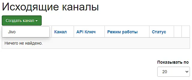 Нажмите на кнопку "Создать канал" и выберите Jivo: