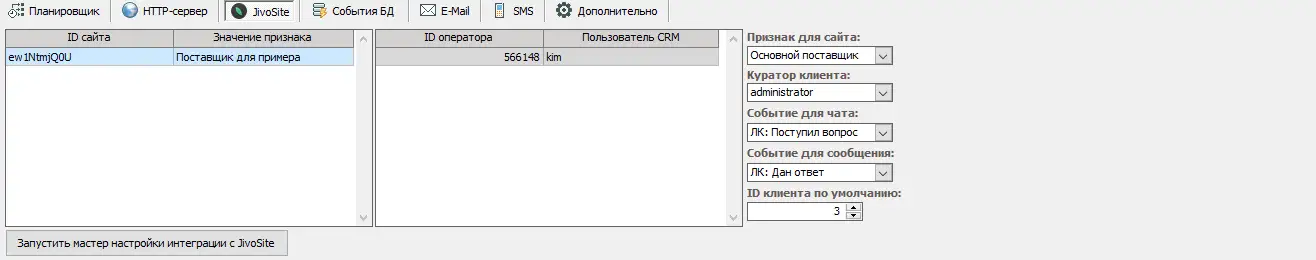 Для подключения вам необходимо запустить Мастер настройки интеграции в CRM