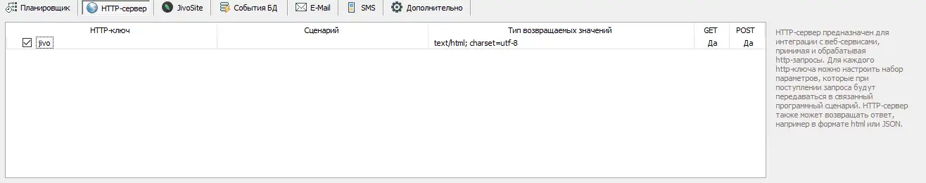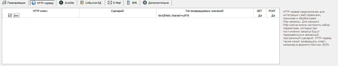 Интеграция с RegionSoft CRM осуществляется посредством приложения RegionSoft Application Server с помощью WebHooks. В приложении для каждой задействованной БД RegionSoft CRM возможно настроить интеграцию с Jivo.
