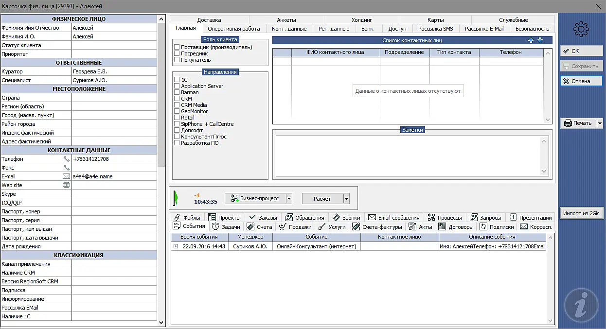 По факту окончания чата, клиент распознается (если находится по контактным данным), создается новый клиент (если не найден по контактным данным, но они есть). Если клиент не оставил контактных данных, диалог прикрепляется как событие к клиенту по умолчанию, иначе - к новому или ранее распознанному.