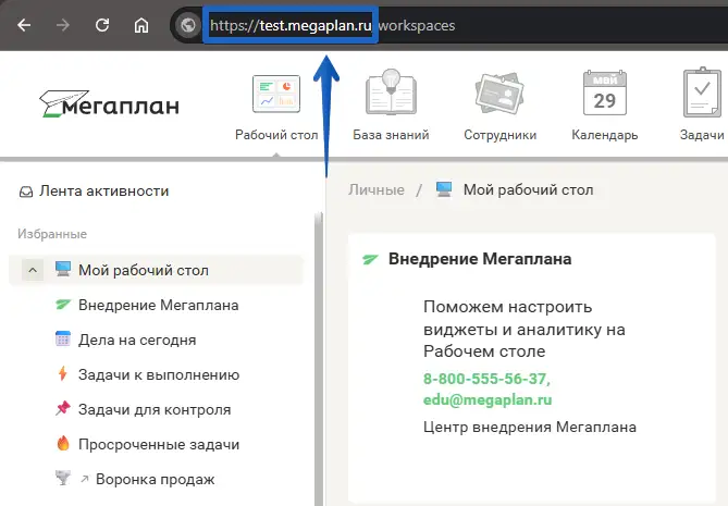 Домен Мегаплана. Зайдите в вашу систему в Мегаплан и скопируйте следующую часть из адресной строки: