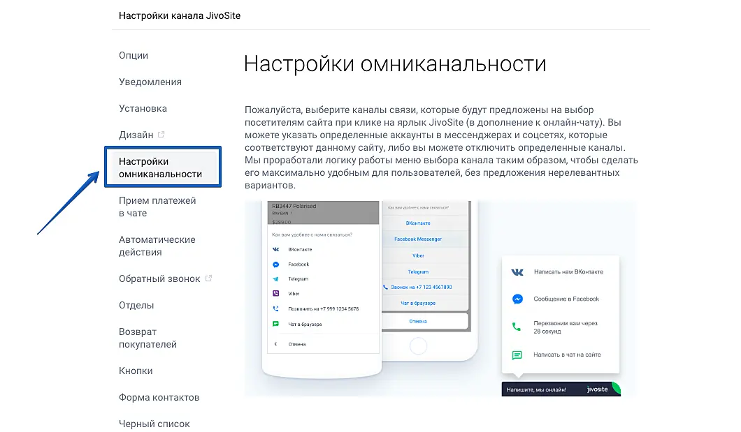 В этом разделе вы сможете выбрать необходимые группы/страницы или мессенджеры, которые будут подключены к виджету на сайте.