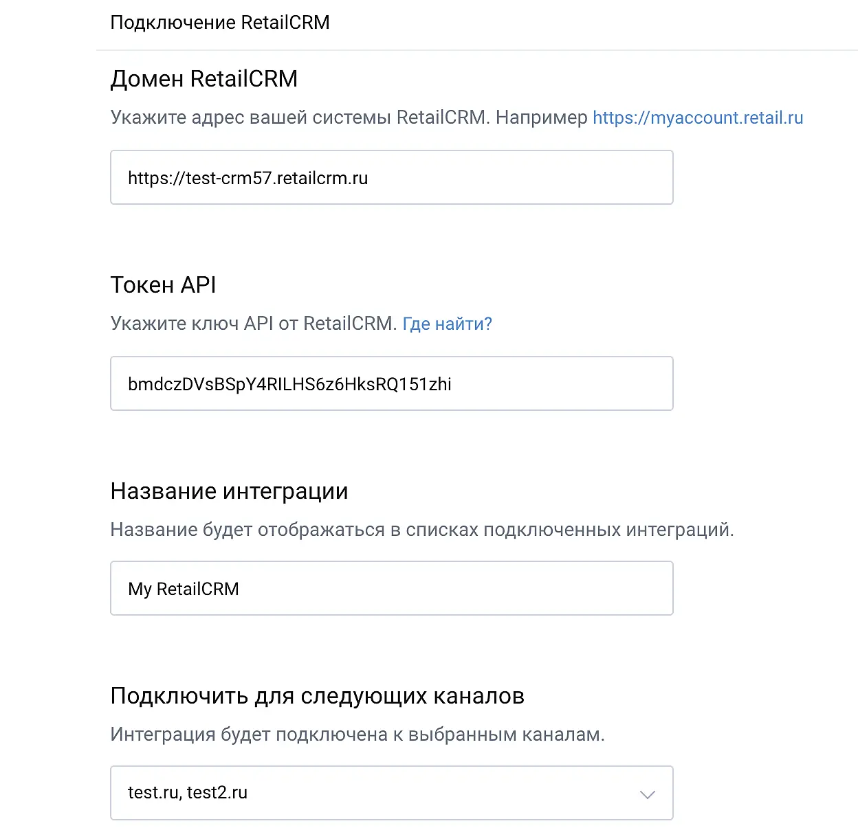 1. Домен RetailCRM. Им является адрес вашей системы в RetailCRM. Вы можете скопировать его из адресной строки:
